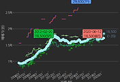 - 하단에 이어지는 거래량 막대차트(bar chart)와 함께 비교해보는 것이 좋습니다.