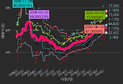 - 하단에 이어지는 거래량 막대차트(bar chart)와 함께 비교해보는 것이 좋습니다.