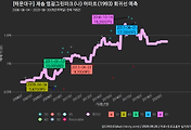 - 하단에 이어지는 거래량 막대차트(bar chart)와 함께 비교해보는 것이 좋습니다.