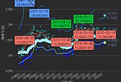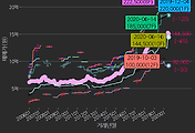 - 하단에 이어지는 거래량 막대차트(bar chart)와 함께 비교해보는 것이 좋습니다.