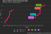 - 하단에 이어지는 거래량 막대차트(bar chart)와 함께 비교해보는 것이 좋습니다.