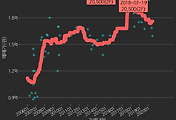 - 하단에 이어지는 거래량 막대차트(bar chart)와 함께 비교해보는 것이 좋습니다.