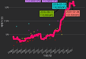 - 하단에 이어지는 거래량 막대차트(bar chart)와 함께 비교해보는 것이 좋습니다.
