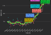 - 하단에 이어지는 거래량 막대차트(bar chart)와 함께 비교해보는 것이 좋습니다.