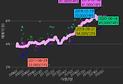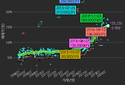 - 하단에 이어지는 거래량 막대차트(bar chart)와 함께 비교해보는 것이 좋습니다.