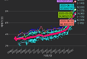- 하단에 이어지는 거래량 막대차트(bar chart)와 함께 비교해보는 것이 좋습니다.