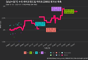 - 하단에 이어지는 거래량 막대차트(bar chart)와 함께 비교해보는 것이 좋습니다.