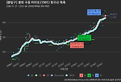 - 하단에 이어지는 거래량 막대차트(bar chart)와 함께 비교해보는 것이 좋습니다.