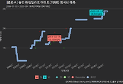 - 하단에 이어지는 거래량 막대차트(bar chart)와 함께 비교해보는 것이 좋습니다.
