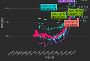 - 하단에 이어지는 거래량 막대차트(bar chart)와 함께 비교해보는 것이 좋습니다.