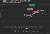 - 하단에 이어지는 거래량 막대차트(bar chart)와 함께 비교해보는 것이 좋습니다.