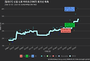 - 하단에 이어지는 거래량 막대차트(bar chart)와 함께 비교해보는 것이 좋습니다.