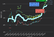 - 하단에 이어지는 거래량 막대차트(bar chart)와 함께 비교해보는 것이 좋습니다.