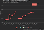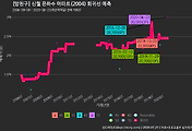 - 하단에 이어지는 거래량 막대차트(bar chart)와 함께 비교해보는 것이 좋습니다.
