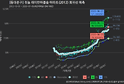 - 하단에 이어지는 거래량 막대차트(bar chart)와 함께 비교해보는 것이 좋습니다.