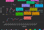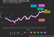 - 하단에 이어지는 거래량 막대차트(bar chart)와 함께 비교해보는 것이 좋습니다.