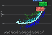 - 하단에 이어지는 거래량 막대차트(bar chart)와 함께 비교해보는 것이 좋습니다.