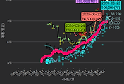 - 하단에 이어지는 거래량 막대차트(bar chart)와 함께 비교해보는 것이 좋습니다.