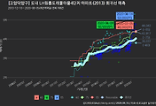 - 하단에 이어지는 거래량 막대차트(bar chart)와 함께 비교해보는 것이 좋습니다.