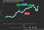 - 하단에 이어지는 거래량 막대차트(bar chart)와 함께 비교해보는 것이 좋습니다.