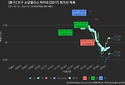 - 하단에 이어지는 거래량 막대차트(bar chart)와 함께 비교해보는 것이 좋습니다.