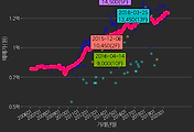 - 하단에 이어지는 거래량 막대차트(bar chart)와 함께 비교해보는 것이 좋습니다.