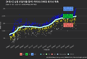 - 하단에 이어지는 거래량 막대차트(bar chart)와 함께 비교해보는 것이 좋습니다.