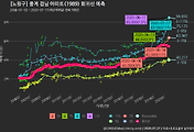 - 하단에 이어지는 거래량 막대차트(bar chart)와 함께 비교해보는 것이 좋습니다.