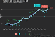 - 하단에 이어지는 거래량 막대차트(bar chart)와 함께 비교해보는 것이 좋습니다.