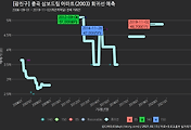 - 하단에 이어지는 거래량 막대차트(bar chart)와 함께 비교해보는 것이 좋습니다.
