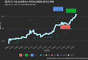 - 하단에 이어지는 거래량 막대차트(bar chart)와 함께 비교해보는 것이 좋습니다.
