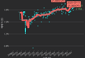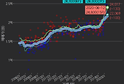 - 하단에 이어지는 거래량 막대차트(bar chart)와 함께 비교해보는 것이 좋습니다.
