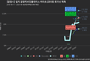 - 하단에 이어지는 거래량 막대차트(bar chart)와 함께 비교해보는 것이 좋습니다.