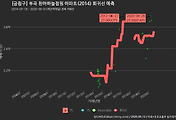 - 하단에 이어지는 거래량 막대차트(bar chart)와 함께 비교해보는 것이 좋습니다.