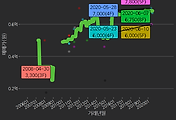- 하단에 이어지는 거래량 막대차트(bar chart)와 함께 비교해보는 것이 좋습니다.