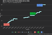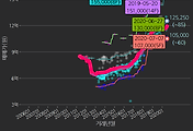 - 하단에 이어지는 거래량 막대차트(bar chart)와 함께 비교해보는 것이 좋습니다.