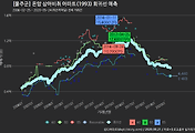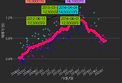 - 하단에 이어지는 거래량 막대차트(bar chart)와 함께 비교해보는 것이 좋습니다.