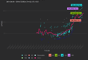 - 하단에 이어지는 거래량 막대차트(bar chart)와 함께 비교해보는 것이 좋습니다.