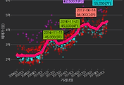 - 하단에 이어지는 거래량 막대차트(bar chart)와 함께 비교해보는 것이 좋습니다.
