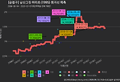 - 하단에 이어지는 거래량 막대차트(bar chart)와 함께 비교해보는 것이 좋습니다.
