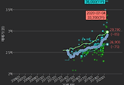 - 하단에 이어지는 거래량 막대차트(bar chart)와 함께 비교해보는 것이 좋습니다.