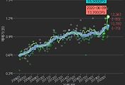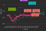 - 하단에 이어지는 거래량 막대차트(bar chart)와 함께 비교해보는 것이 좋습니다.