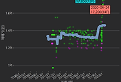 - 하단에 이어지는 거래량 막대차트(bar chart)와 함께 비교해보는 것이 좋습니다.