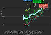 - 하단에 이어지는 거래량 막대차트(bar chart)와 함께 비교해보는 것이 좋습니다.