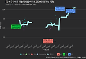 - 하단에 이어지는 거래량 막대차트(bar chart)와 함께 비교해보는 것이 좋습니다.