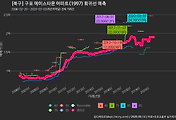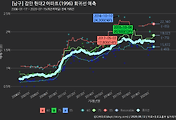 - 하단에 이어지는 거래량 막대차트(bar chart)와 함께 비교해보는 것이 좋습니다.