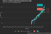 - 하단에 이어지는 거래량 막대차트(bar chart)와 함께 비교해보는 것이 좋습니다.