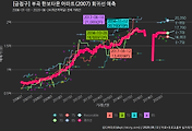 - 하단에 이어지는 거래량 막대차트(bar chart)와 함께 비교해보는 것이 좋습니다.