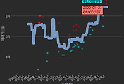 - 하단에 이어지는 거래량 막대차트(bar chart)와 함께 비교해보는 것이 좋습니다.