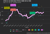 - 하단에 이어지는 거래량 막대차트(bar chart)와 함께 비교해보는 것이 좋습니다.